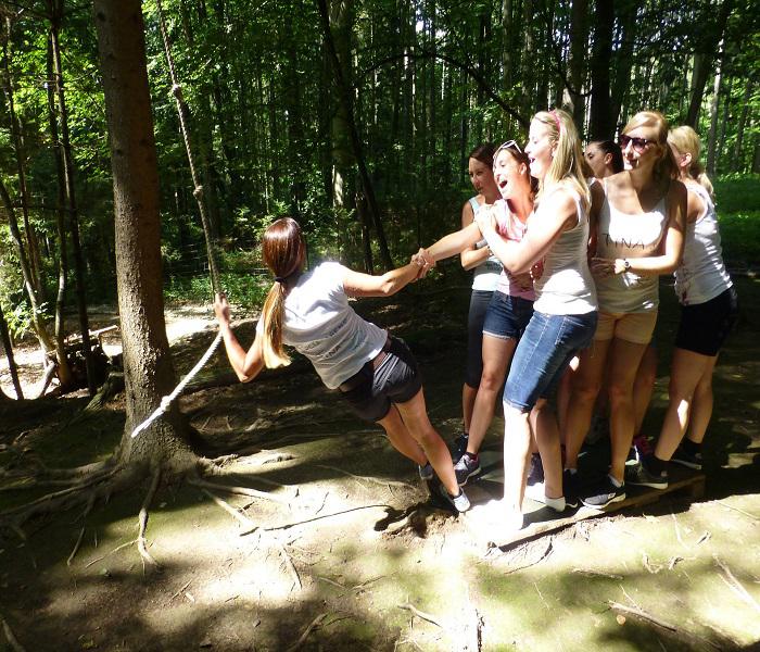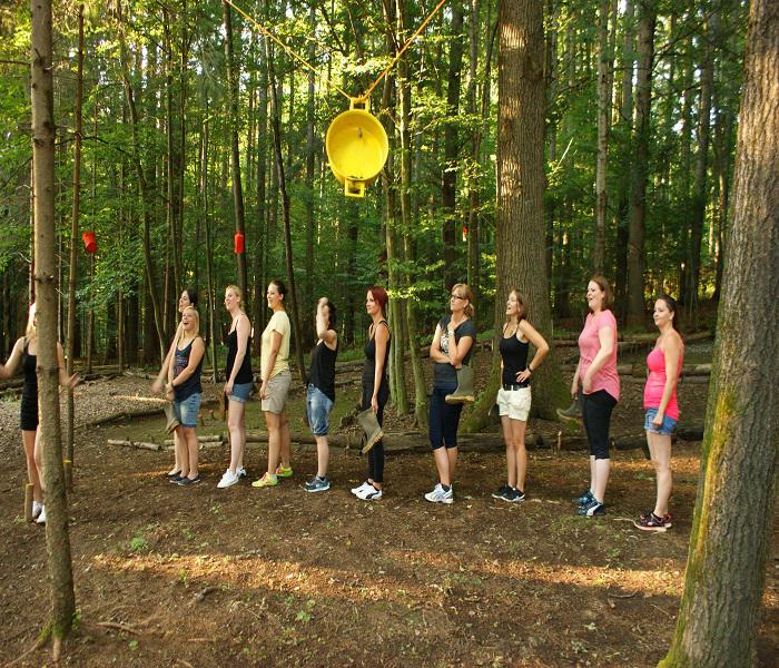 Versuche einen Baumstamm so Weit wie möglich zu werfen.