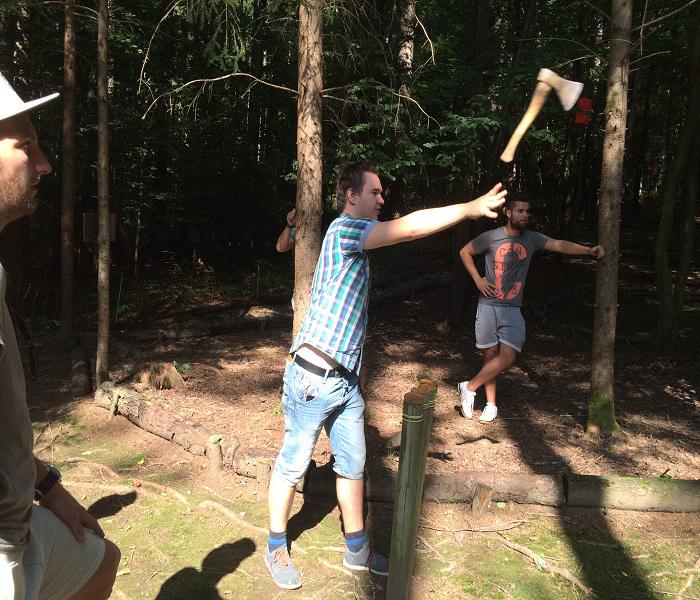 Versuche mit 2 Kugeln die miteinander verbunden sind, die Stufen der einzelnen Leitern zu treffen
