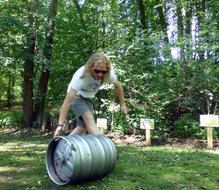 Hängepartie, Balkenpalance, Frisbeekorb, Waldbasketball, Crokettparcour, Riesenmikado, Bodenwurfspiel, Baumwurfspiel.